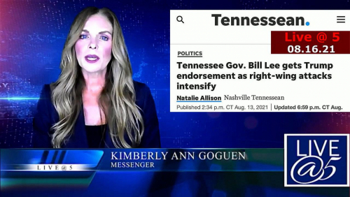 V oddaji Live@5 iz 16. avgusta 2021 za spremembo neposredno poroča varuhinja svetovnega premoženja Kimberly Ann Goguen. V 2-urnem podcastu na radiu Circle of White Light ter 1,5-urnem tedenskem Life Force Zoom srečanju minulo nedeljo je opisala najnovejše zmage v vojni proti globoki državi. Razkrila je tudi, da sta Donald Trump ter Bill Gates zvesta pajdaša pri plandemičnemu genocidu človeštva. Ena od dodatnih novic v tokratni oddaji je, da imajo v ameriški zvezni državi Tennessee sedaj namen kar po telefonu ocenjevati duševno zdravje ljudi ter jih prisilno psihiatrično hospitalizirati. Oddaja pa vsebuje tudi posnetek ženske, ki je v to državo pobegnila iz Kalifornije in se je na sestanku sveta šole pogumno postavila za pravice svojih od cepiv poškodovanih otrok. Če želite izvedeti več, se prijavite na prejemanje celotnih prevodov takšnih poročil > https://zbor.si/obrazec-za-obvescanje