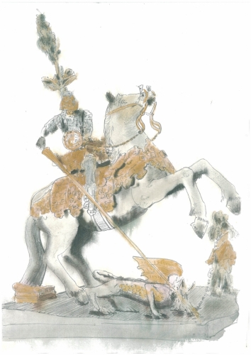 Piran - Pogled s Tartinijevega trga na zvonik cerkve Sv.Jurija Risba s svinčnikom / Akvarel Dimenzija: 29 x 40 cm