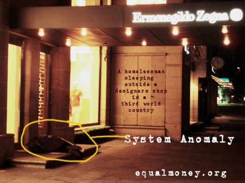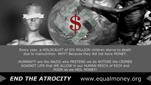 What is it in our relationship with Money within ourselves, and the World-System as a whole – that we would not consider changing/transforming our relationship with Money, and the World-System itself into and as a System that ensure an equal and one life for all? What is the relationship between our Experience with Money and Fear that we would not consider a solution to the lives of all of humanity, especially those really physically suffering within poverty, starvation, famine etc.? Why/how have we come to accept and allow institutions/charities that only receive the ‘scraps’ / ‘little bits’ of change/money and resources to those in physical suffering living with little to no money – instead of considering an equal and one solution for all, within changing/transforming the World-System as a whole? What is it within ourselves in our relationship/experience with Money, and our relationship/experience to/towards Humanity that requires change/transformation to really see/realise/unders