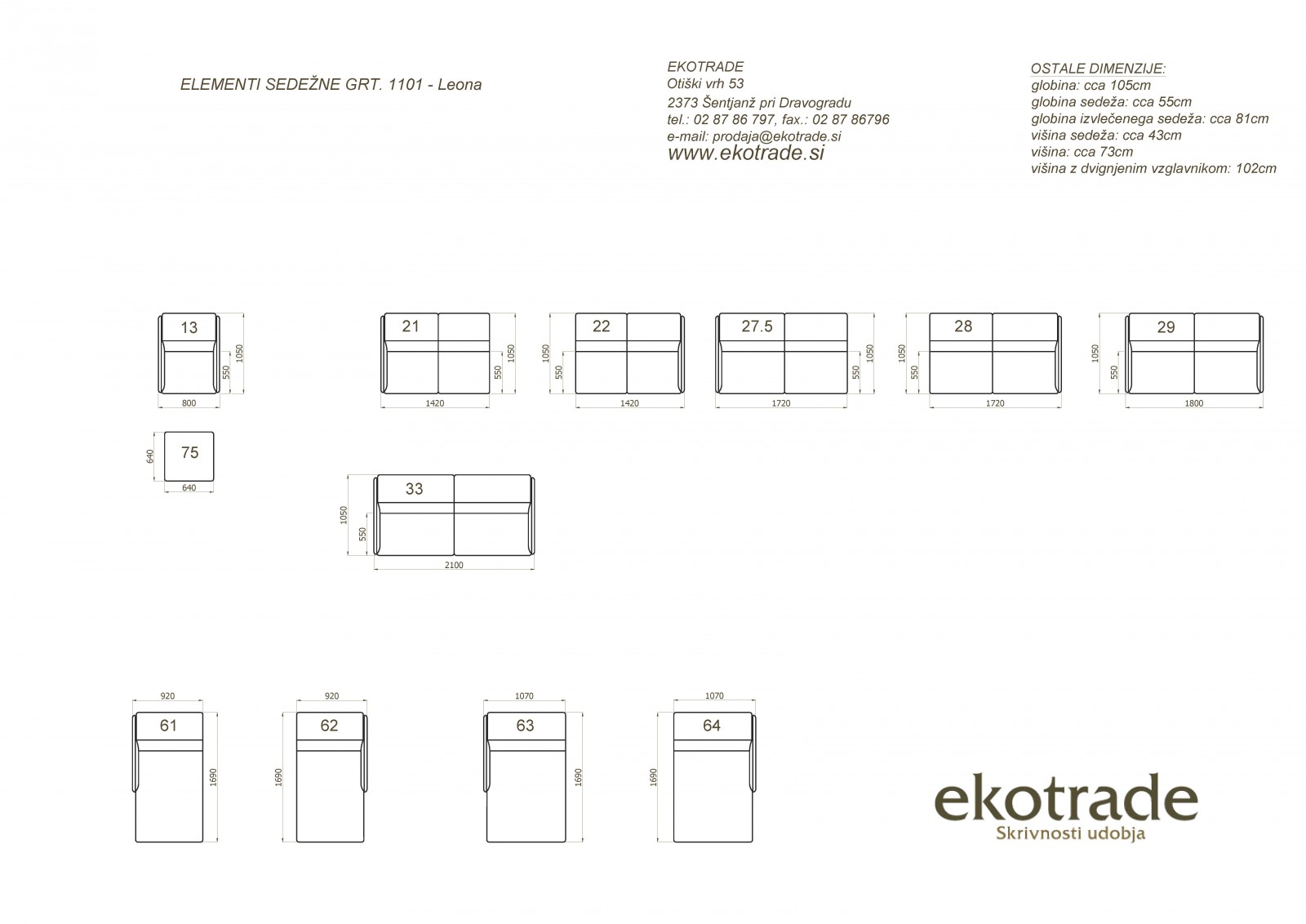 Možni elementi za sestav sedežne garniture LEONA - novo (FOTELJ, TABURE, samostojni 3-SED ali 2,5 SED, ...)