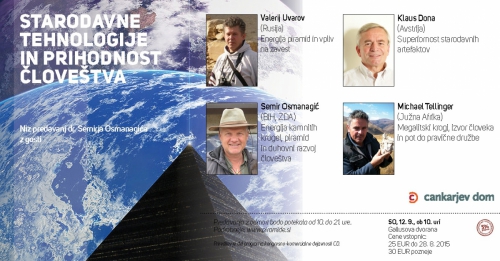 V Cankarjevem domu v Ljubljani bo 12. septembra od 10:00 ure naprej niz predavanj z naslovom PIRAMIDE - starodavne tehnologije in prihodnost človeštva.