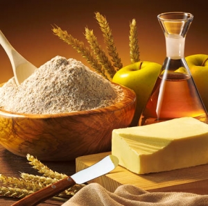 Sestavine: 800 g jabolk, 200 g peresnikov, 200 g sladkorja, 250 g skute, 4 jajca, 1 dl kisle smetane, 50 g masla, sok polovice limone, 1 zavitek vaniljevega sladkorja, limonina lupinica, sol, maščoba, ostra moka za pekač, sladkor v prahu za posip