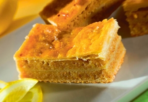 Sestavine: 250 g listnatega testa; za nadev: 100 g sladkorja, 200 g mletih mandljev, 1 jajce, 2 limoni; za limonin žele: sok 2 limon, 40 g sladkorja.