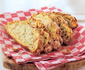 Sestavine: 1 rdeča čebula, 2 vejici timijana, 110 g mladega kozjega sira, 175 g moke s pecilnim praškom in moka za posipanje, 1 žlička soli, pol žličke svežega mletega popra, 1 jajce, 2 žlici mleka, 1 žlička gorčice.