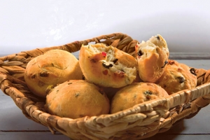 Bombete z oljkami in slanino