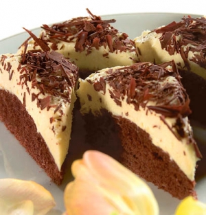 Testo: 250 g masla ali margarine, 250 g sladkorja, 6 jajc, 300 g bele moke, 50 g kakavovega prahu, 0,5 dl mleka, 1 zavitek pecilnega praška, 1 zavitek vaniljevega sladkorja.