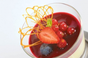 Gozdne sadeže z malo vode kuhamo, da se razpustijo. Potem jih zmešamo s paličnim mešalnikom in precedimo skozi cedilo. Dodamo sladkor in kuhamo, da se primerno zgosti. V kozarčke damo malo nadrobljenega čokoladnega biskvita in ga malo pokapamo s sladkorno raztopino. Potem nadevamo kremo v kozarčke in damo v hladilnik, da se ohladi in strdi. Po vrhu prelijemo s prelivom iz gozdnih sadežev.