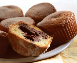 V 0,5 dl hladnega mleka razmešamo čokoladni puding in ga zakuhamo v 3 dl vrelega mleka s 40 g sladkorja, dobro prekuhamo, mu dodamo polovico temne čokolade in ga počasi ohlajamo. Moko in pecilni prašek zmešamo. Posebej v posodi razžvrkljamo jajce, mleko, stopljeno maslo, navadni in vaniljev sladkor ter to primešamo moki in dobro zmešamo. Polovico testa porazdelimo v posodice za mafine, vsakemu na sredino položimo eno žličko pudinga in ga prekrijemo s preostankom testa.