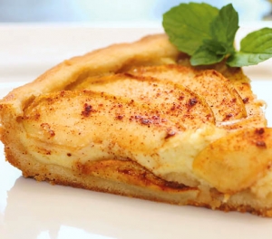 Sestavine: 1/2 skodelice zmehčanega masla, 1/3 skodelice sladkorja,1/4 žličke vaniljevega ekstrakta, 1 skodelica moke, 250 g kremastega sira (philadelphia), 1/4 skodelice sladkorja, 1 jajce, pol žličke vaniljevega ekstrakta, 1/2 žličke mletega cimeta, 1/3 skodelice sladkorja, 2-3 velika jabolka grannny smith