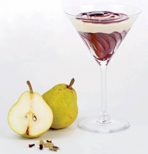 Hruške v rdečem vinu s hruškovo kremo in kardamomom