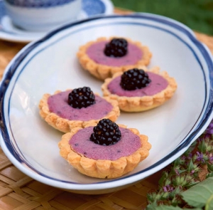 Testo: 250 g moke, 1 ščep soli, 150 g masla, 75 g sladkorja, 1 rumenjak, 4 žlice vode; krema: 300 g robidnic, 150 g sladke ali albuminske skute, 50 g sladkorja, 3 žlice limoninega soka, 3 listi bele želatine, 125 ml sladke smetane.