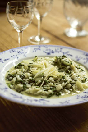 Rižota z blitvo, smetano in muškatnim oreščkom