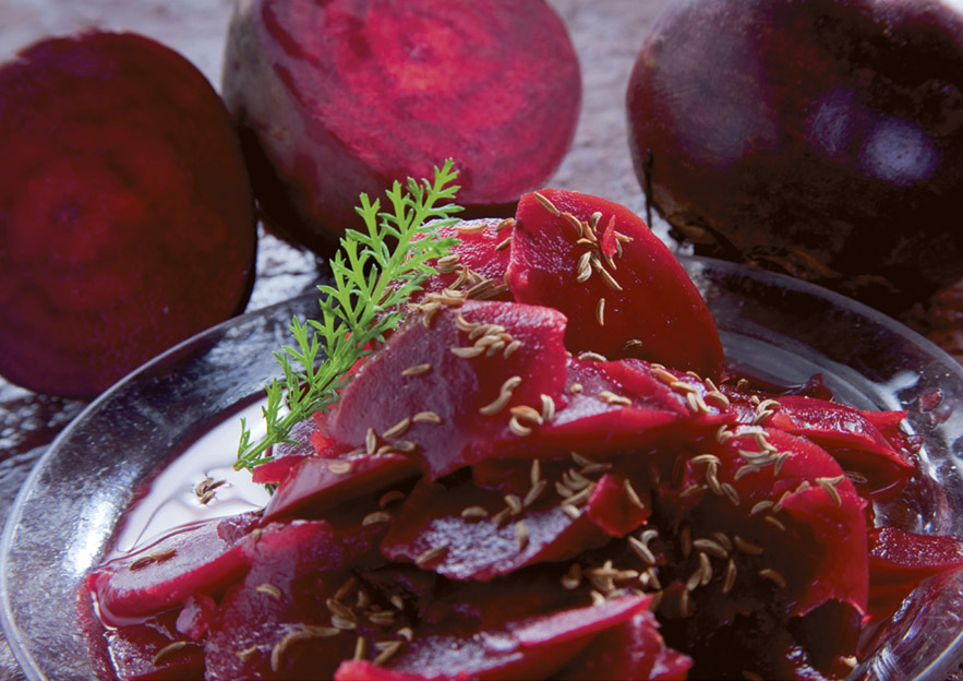 Potrebujemo: 1 kg rdeče pese, 750 ml vode, 1 žlico soli, 1 žlico kumine, 1 žličko koriandrovih zrn