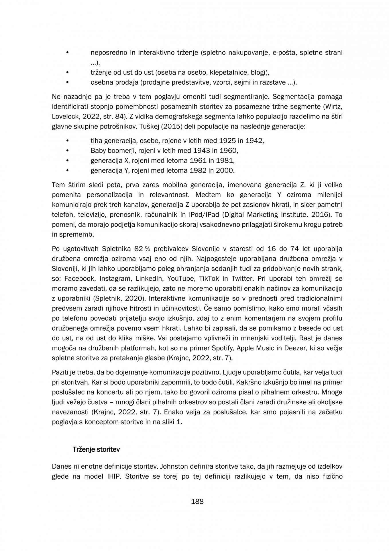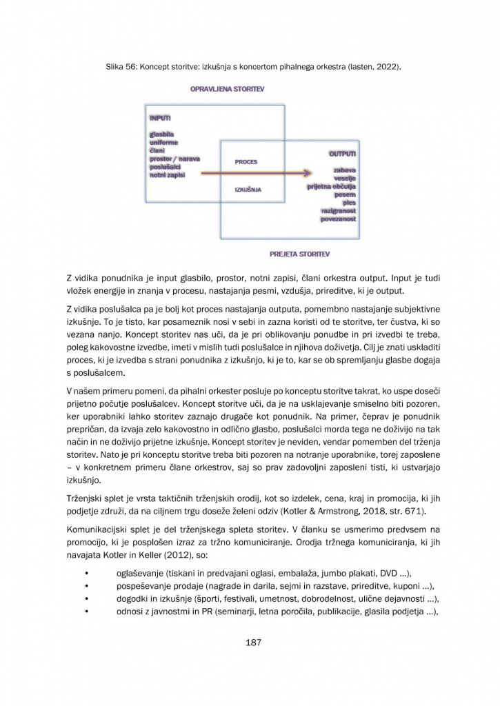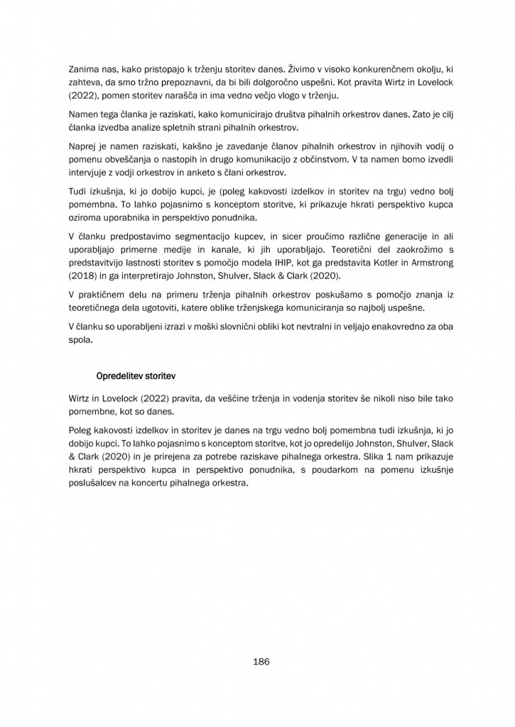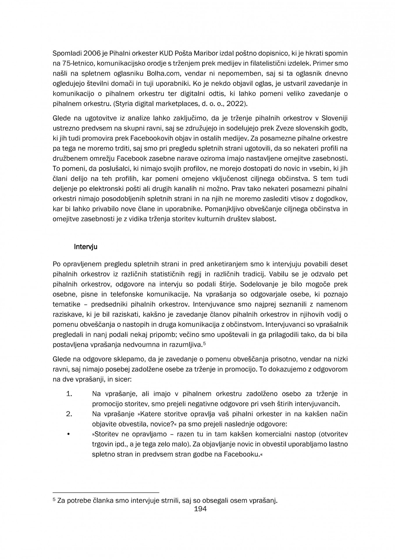 V članku bomo strnili prikaz trženja storitev pihalnih orkestrov, ki smo ga proučili teoretično in praktično z različnimi metodami raziskovanja v obširneje opravljeni analizi magistrskega dela Trženje storitev pihalnih orkestrov v Sloveniji spomladi 2022 in nato preverili za namen tega članka. Naš namen je ugotoviti, s kakšnimi oblikami trženja in komuniciranja bi pihalni orkestri postali bolj prepoznavni. S to raziskavo bomo med drugim skušali okrepiti zavedanje o trženju storitev pihalnih orkestrov v Sloveniji, ki so večinoma kulturno-umetniška društva. S pomočjo izvedene ankete bomo ugotovili, kje sami člani puščajo digitalne odtise – kar bi bilo pri nadaljnjih raziskavah priporočljivo ugotoviti, kje jih njihovo občinstvo pušča za seboj. Zato bomo pri raziskavi osredotočeni predvsem na temeljno raziskovalno vprašanje: kako strokovno je treba pristopiti k trženju storitev danes, v tem visoko konkurenčnem okolju, da bi lahko bili dolgoročno uspešni. 185 Cilj raziskave je izvedeti mnenje članov pihalnih orkestrov o pomenu prepoznavnosti pihalnih orkestrov in o oblikah komuniciranja s trgom ter odkriti njihove poglede na prepoznavnost pihalnih orkestrov. Poleg kakovostne storitve je v ospredju zadovoljstvo kupcev; v tem primeru sta to zadovoljstvo in doživetja občinstva na dogodkih. Zanima nas, ali se člani orkestrov zavedajo, da je hkrati s predstavitvijo treba razmišljati tudi o tem, kako ustvariti izkušnjo za udeležence doživetja. Udeležencem izkušnje in doživetja veliko pomenijo, o njih govorijo svojim prijateljem in sledilcem na družbenih omrežjih, kar je brezplačna promocija. Za pihalne orkestre bo ključnega pomena pogostejše pojavljanje v medijih. V raziskovalnem delu izvedemo analizo trženja storitev pihalnih orkestrov v Sloveniji, torej področje, ki je bilo do zdaj popolnoma neraziskano. Pri obsežnejši raziskavi smo si zastavili raziskovalna vprašanja in hipoteze ter pregledali pihalne orkestre z vidika trženja, v članku pa bomo prikazali izvedeno metodologijo in glavne ugotovitve. Naš raziskovalni vzorec je osredotočen na člane pihalnih orkestrov, ne pa tudi na občinstvo. Vendar pa uporabno vrednost raziskave vidimo v tem, da jo lahko uporabi veliko različnih društev pri njihovem trženju storitev.