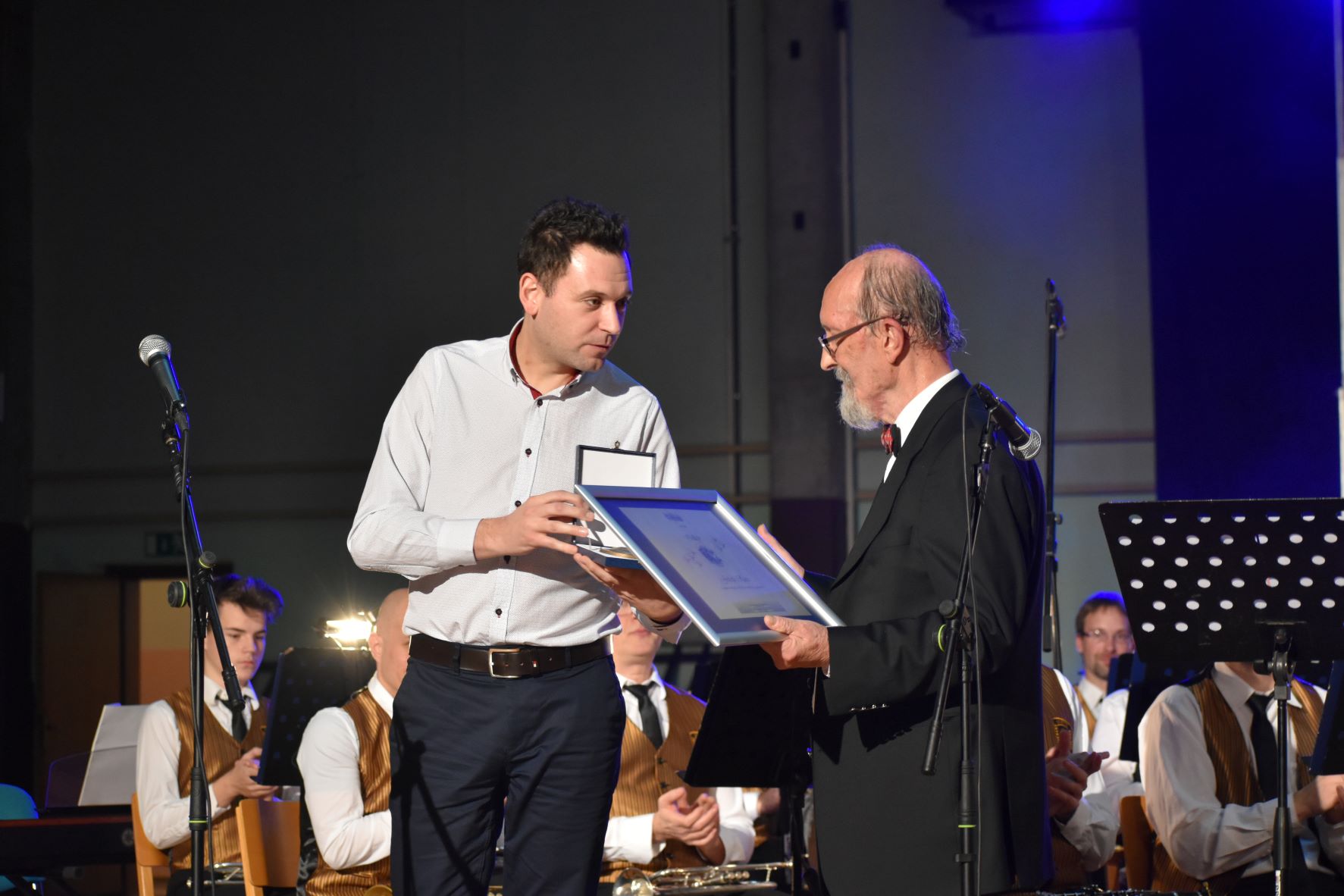 Praznične dni je Pihalni orkester radeških papirničarjev  tudi letos popestril s tradicionalnim ožično-novoletnim koncertom. Letošnji koncert je bil še posebej prazničen in slovesen, saj so ga pripravili v sodelovanju z legendarnim glasbenikom in dirigentom Jožetom Rusom, ki je ob tej priložnosti obeležil 50. obletnico dirigiranja. Velik del glasbenega ustvarjanja je Jože Rus preživel v Radečah, kjer je s svojimi izkušnjami in znanjem odkril in oblikoval marsikaterega glasbenega talenta v kraju in okolici. Članom je bilo v izjemno čast in veselje, da so imeli priložnost (znova) sodelovati s tem izjemnim glasbenikom, ki je, tako v Radečah kot drugje, pustil pomemben pečat na področju kulturnih dejavnosti, še posebej na področju godbeništva. Orkester je pod vodstvom dirigentke Antonije Germ začel koncert s skladbo Happy Christmas, drugi del pa nadaljeval z Avsenikovo skladbo Pastirček, kjer je solo na klarinetu odigral Jože Rus. V nadaljevanju je bil predstavljen pester izbor skladb, ki jih je orkester odigral pod vodstvom Jožeta Rusa in bodo živo zapisane v spominu vsakega obiskovalca. Še posebno skladba Zaigrajmo in zapojmo , kjer so vsi v dvorani zapeli skupaj z orkestrom, ki je v venčku zaigral priljubljene slovenske ljudske pesmi. Prisluhnili smo tudi številnim solističnim točkam, v katerih so sodelovali člani orkestra: Franci Sigmund, Antonija Germ, Maja Brečko, Valentina Novak ter dva izmed Jožetovih bivših učencev, Matic Titovšek in Tomaž Kmetič, ki sta skupaj s slavljencem odigrala zabaven trio klarinetov. Na koncertu ni manjkalo niti solističnih pevskih točk, pri katerih je z mikrofonom v roki blestela Antonija Germ, Valentina Novak pa je z njo v duetu odpela tudi Avsenikovo skladbo Čakala bom, s katero so (poleg skladbe Pastirček) godbeniki obeležili tudi Avsenikovo leto 2019. Koncert je bil resnično slavnosten in se bo zagotovo vtisnil v spomin Jožeta Rusa,  ki je prejel tudi najvišje priznanje Zveze slovenskih godb, odličje Bojana Adamiča, za izjemne zasluge na področju slovenskega godbeništva. Podelil mu ga je podpredsednik ZSG Gašper Salobir. Koncert je z izbranimi verzi povezovala Katja Čeč. Godbeniki so uradni del zaključili s klasiko Radetzky Marsch, za konec pa zaigrali skladbo Silvestrski poljub, ki jo je odpel Jože Rus v družbi Antonije in Valentine.