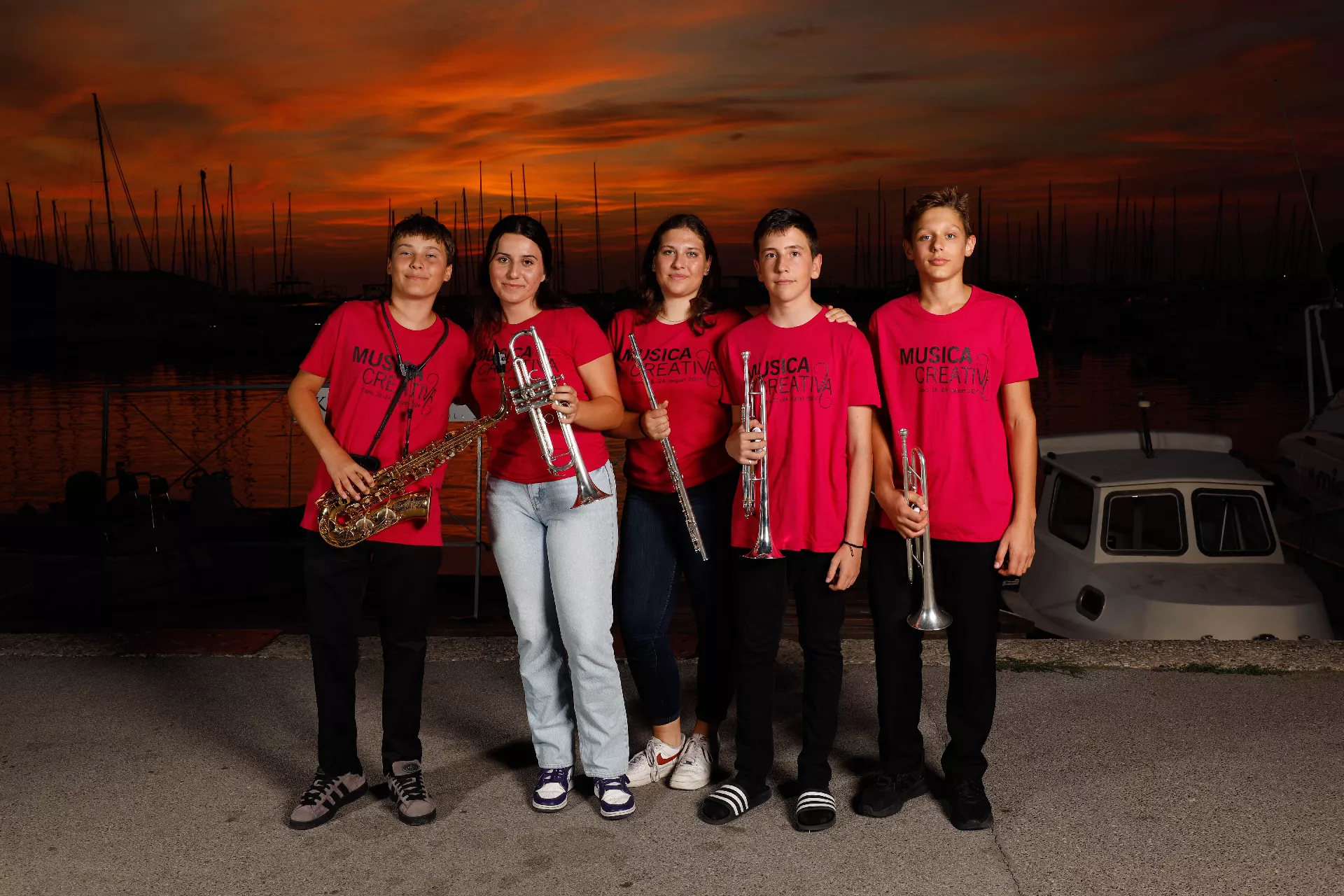 V četrtek zvečer smo se vsi udeleženci fotografirali v majicah kampa, nato pa so komorne zasedbe nastopile v parku, kar je bil le eden izmed nastopov. Petek, 23. avgusta, je prinesel dva pomembna dogodka – dopoldanski koncert pred dijaškim domom in zvečer še ribiški praznik v Izoli, ki smo se ga lahko udeležili in obiskali različna prizorišča, kjer so nastopali slovenski umetniki – Zvita feltna, Čuki…