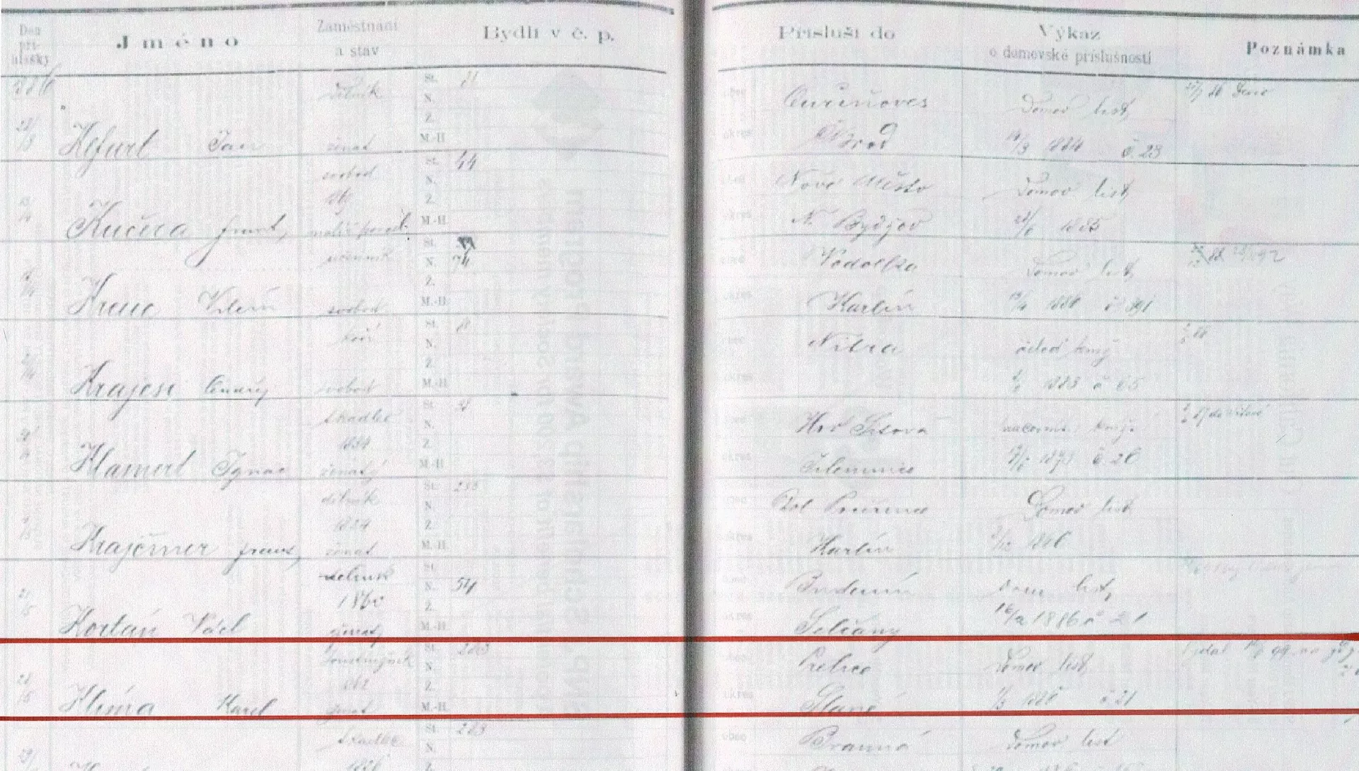 Izpis iz Knjige rojstev ž. c. v Libeňu (Praga)