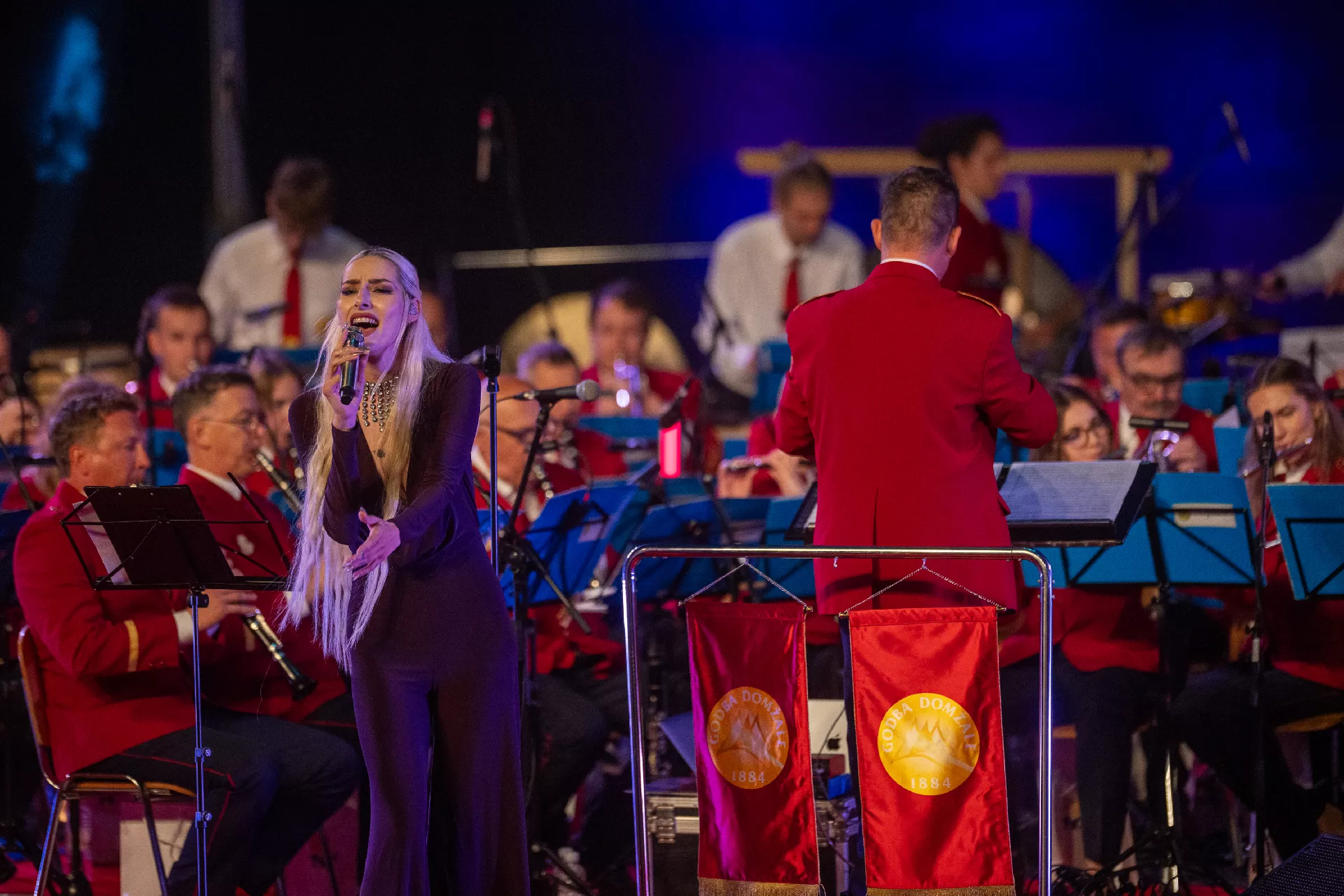 V petek, 31.5.2024, je sledil veliki praznični koncert ob našem jubileju z naslovom Srčni mozaik, kjer smo iz drobcev najrazličnejših odtenkov umetnosti sestavili unikatno umetniško predstavo pod dirigentskim vodstvom Gregorja Vidmarja. V Poletnem gledališču Studenec smo združili moči s Slovenskim oktetom ter Raiven. Program je izpovedoval ljubezen do slovenske tradicije, ki je zazvenela v novih podobah in na trenutke dobila pridih sodobnosti. Naslov Srčni mozaik ni naključje. Izbrali smo ga, ker namiguje na široko paleto glasbe, s katero slikamo vsi, ki smo se ta večer zvrstili na odru. V našem koncertnem programu smo se tako lotili ogromnega razpona zvrsti od elektronsko obogatenih zvokov pihalnega orkestra, klasičnih fanfar z eksotičnimi ritmi, do krstne izvedbe Srčne koračnice (Primož Kosec), posvečene letošnjemu jubileju. V zven slovenske ljudske pesmi nas je popeljal tretji stavek dela Tri prekmurske prof. Tomaža Habeta, domžalskega umetnika, ki je na poti Godbe Domžale pustil pečat neprecenljive vrednosti. Dobršen del koncertnega programa je prišel izpod peresa Petra Tovornika, odličnega slovenskega skladatelja in aranžerja mlajše generacije. Na slavnostnem odru sta zazvenela dva njegova venčka slovenskih ljudskih pesmi z naslovoma Štajerska Trilogija in Zgodbe z vasi, ki so v sodelovanje povezali Slovenski oktet, Roberta Smolnikarja ter Raiven. Omeniti velja tudi na novo ustvarjeno in udarno Tovornikovo delo Back Street Drums ob izvedbi katerega je zablestela naša desetčlanska tolkalska sekcija z atraktivnim nastopom in koreografijo, ki se je razprostirala po celotnem gledališču.
