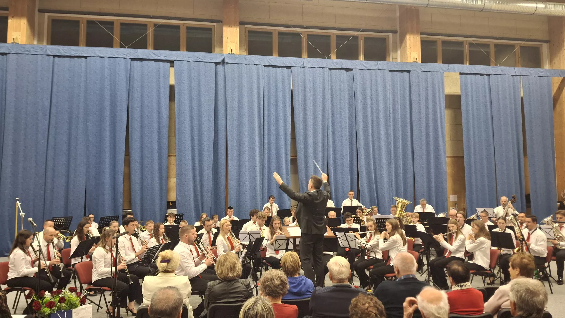 Pihalni orkester Divača na strehi novega prizidka
