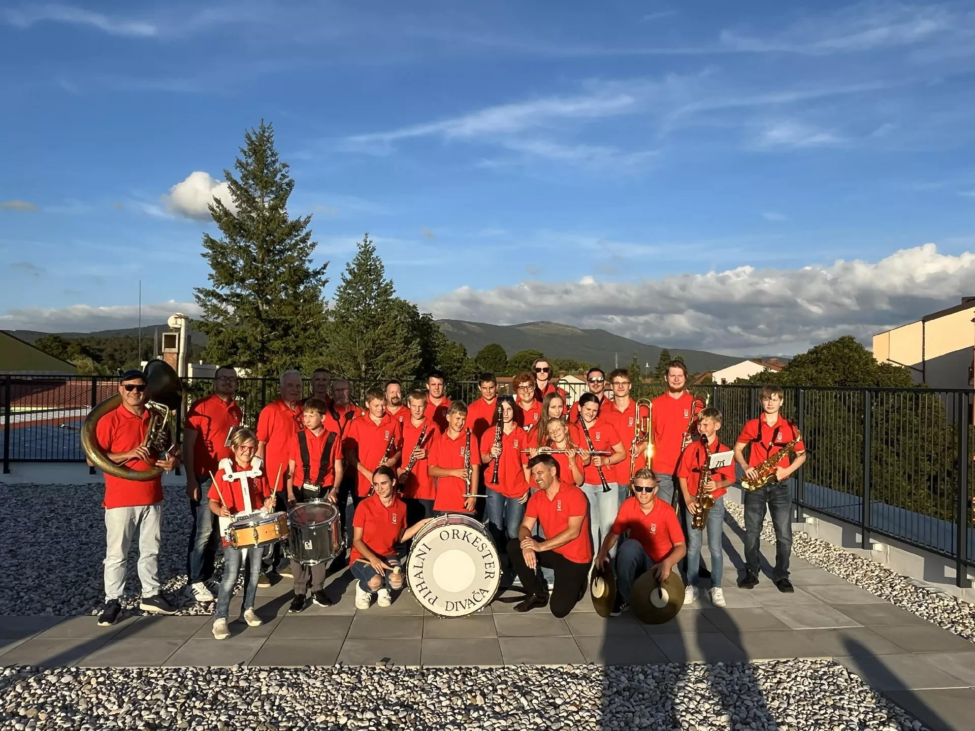 1. september je posebno slavnosten zlasti za prvošolce. 1. september 2025 pa je bil slavnosten za vse učence in zaposlene na divaški osnovni šoli, saj so odprli nov prizidek. Šola je že vrsto let premajhna za tako veliko število osnovnošolcev, z novimi, sodobno opremljenimi, svetlimi in velikimi prostori je gotovo pomembna pridobitev tako za tiste, ki v njej pridobivajo znanje, kot za tiste, ki mladim generacijam znanje in svoje izkušnje predajajo. Na prireditvi se je povezalo veliko število članov pevskega zbora OŠ Divača, mažoretk in učencev, ki so se pod mentorstvom učiteljic in učiteljev gostom predstavili s petjem, plesom in recitalom lastnih pesmi o šoli in poletju. Režiserki prireditve sta članom našega orkestra namenili zelo posebno vlogo, saj smo celotno dogajanje lahko spremljali skoraj dobesedno iz zraka – igrali smo namreč na strehi novega prizidka.