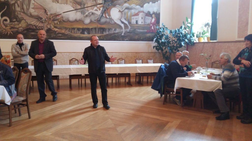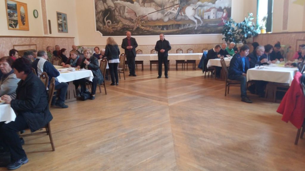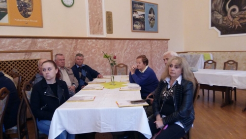 Po uvodnem ogledu mesta smo nadaljevali s prijetnim druženjem v gostilni Konjičanka, kjer so nas pozdravili konjiški župan Miran Gorinšek in predstavniki Občinskega odbora SLS Slovenske Konjice. Ob kavi, soku in prigrizku smo si izmenjali izkušnje in načrte vseh treh občin. Vsi skupaj pa smo se razveselili obiska predsednika stranke mag. Marka Zidanška, ki nas je nagovoril in tudi odgovoril na nekaj vprašanj udeležencev izleta.