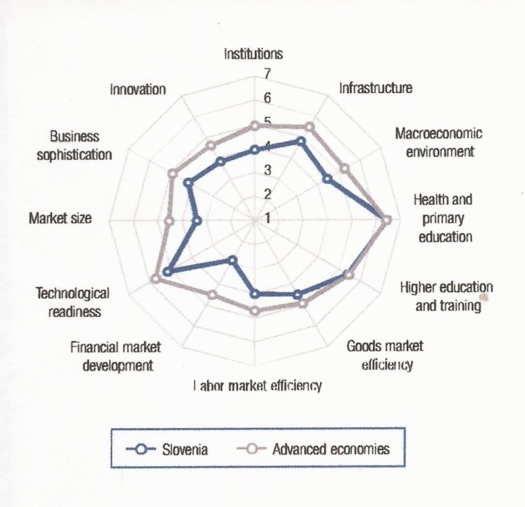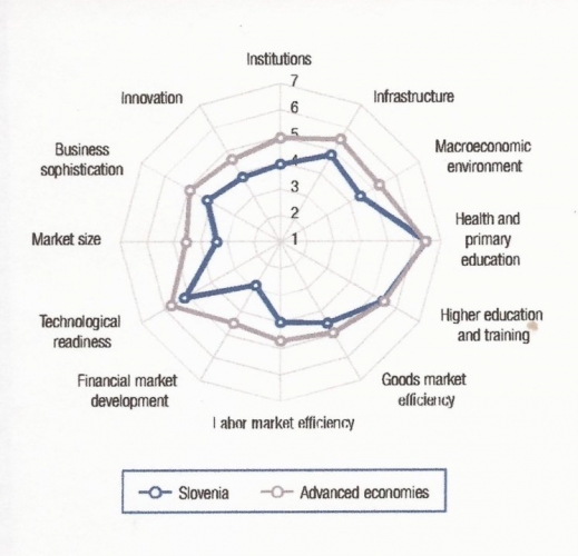 V naši analizi moramo upoštevati tudi, da se Evropa in z njo Slovenija nahajata v četrti industrijski revoluciji. Z njo postajata znanje in usposobljeni človeški viri, nosilci znanja, glavna dejavnika uspešnejšega gospodarjenja. Spodbudno je, da je na osnovi Slike 2 razvidno, da po kakovosti ti in dostopnosti izobraževanja ne zaostajamo za primerljivimi državami. Popolnoma drugačna pa je slika, če poklicni profil diplomantov primerjamo s potrebami trga dela. Pri tem ugotovimo veliko neskladnost, ki vodi na eni strani do nezaposljivih mladih, ki so svoje šolanje zaključili in na drugi strani na pomanjkanje nekaterih izobraževalnih profilov, ki bi jih gospodarstvo za svoj razvoj nujno potrebovalo. Naj navedem tukaj samo nekaj karakterističnih številk. V terciarno izobraževanje se v Sloveniji vpiše ~75% generacije, v primerljivih državah <40%. Zaradi tega pretiranega vpisa izkustveno pričakujemo, da ~31% generacije študija ne bo uspešno zaključilo in ti mladi bodo tako vsaj večinoma ostali brez kakršnekoli poklicne kvalifikacije in bodo zato tudi težko ali nezaposljivi. Pričakujemo torej lahko, da bo ~44% generacije študij uspešno zaključilo. To je napram primerljivim državam, kot sta Avstrija in Nemčija, kjer je ta številka med 30 in 35%, še vedno nekoliko preveč. Še bolj pa od normale odstopa razmerje diplom med tehnično-naravoslovnimi in družbeno-filozofsko-umetniškimi študiji. Pri nas je to razmerje 1_~2,5, v Avstriji 1_1 in v Nemčiji 1_0,9. Ta očitna nesorazmerja so znatna ovira za uspešnejše gospodarjenje in vzrok za anomalijo, da imamo v Sloveniji visoko brezposelnost 8,9% in večje število nezasedenih delovnih mest.