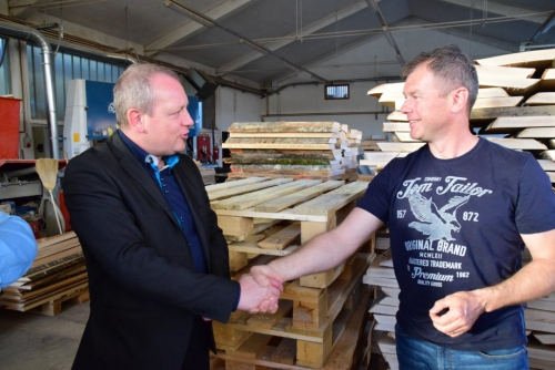 S kočevskim županom dr. Vladimirjem Prebiličem o debirokratizaciji, decentralizaciji in mačehovskem odnosu države do občin.[/caption]Sledil je obisk primera dobrega gospodarja v kočevski občini, podjetja Amles, d. o. o., ki ga uspešno vodi Boštjan Mihelič. Vodstvu SLS je predstavil uspešno lesarsko podjetje, v katerem se ukvarjajo s stopnjami predelave lesa od razreza do sušenja in polizdelkov. G. Mihelič je povedal, da bi s strani države potrebovali več razumevanja do podjetniške logike in dodal, da si želi sistem, ki bo bolje razumel podjetnike. Predsednik SLS mag. Marko Zidanšek se je strinjal in povedal, da je s strani države tako na področju lokalne samouprave kot na področju podjetništva premalo posluha, SLS pa ima v svojem programu zapisane rešitve za zmanjševanje birokratskih ovir in ugodnejše poslovno okolje. Poleg samih izzivov, s katerimi se sooča gozdarska panoga, so bile v pogovoru omenjene tudi težave v izobraževalnem sistemu, saj primanjkuje strojnih, gradbenih inženirjev, zato bo treba spremeniti pogled na lesarstvo, pa tudi druge panoge, da bi privabili več mladih.