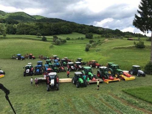 Ljubljana, 18. julij 2017 – Na Zalaznikovem travniku na Velikem hribu v Tuhinjski dolini je 15. julija 2017 potekal že 3. praktični prikaz strojev za košnjo in spravilo sena, kakih trideset zbranih traktorjev in njihovih upravljavcev pa je bilo tokrat deležno tudi blagoslova za varno delo.