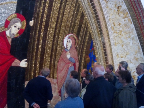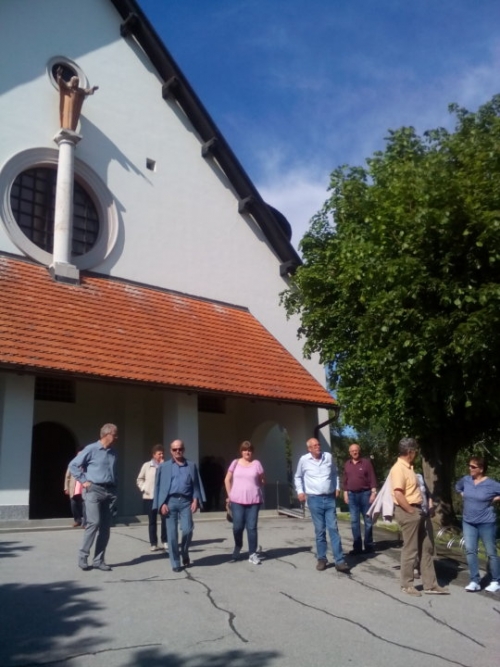 Avtobus nas je odpeljal doživetju nasproti. Kavica ob avtocesti in dobra malica sta nas poživila, da smo lažje sledili lepim dogodkom. Pot nas je vodila v kraj Pertoča kjer smo si ogledali cerkev sv. Helene z bogatim mozaikom, delo patra Marka Rupnika. Tamkajšnji župnik g. Vinkovič nam je podrobno obrazložil pomen vsakega dela te čudovite mojstrovine.