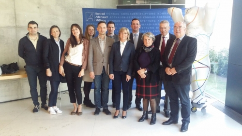 Miha Žižek (NSi), hrvaška delegacija ter Otto Bernhardt in Dragan Čarapin na sedežu Konrad Adenauer Stiftunga. [/caption]