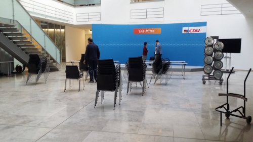 Medijski center ob prihodu na sedež CDU-ja, kjer potekajo po večini novinarske konference. [/caption][caption id="attachment_11400" align="alignnone" width="1280"]