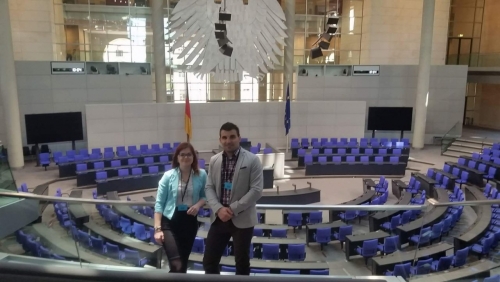 Pod znamenito parlamentarno kupolo smo se srečali z vodjo strokovnega oddelka za parlamentarno pravo Thomasom Hadamekom, ki nam je pojasnil postopek priprave zakonodaje. V Nemčiji je parlament tisti, ki predlaga programske usmeritve vladi, ta pa po njihovih navodilih zakone napiše. Za sprejemanje zakonov v parlamentu so ključne vse stranke, pri njih situacija, v kateri bi ena stranka obvladovala državo, ne obstaja. Zato pa se pred predlogi stranke med seboj posvetujejo, saj močno potrebujejo druga drugo.
