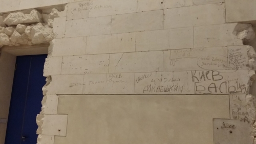 Zid v parlamentu z ruskimi napisi - ostanki prejšnjega režima. [/caption]