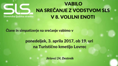 vabimo vas na srečanje v 8. volilno enoto, ki bo potekalo v Destrniku.
