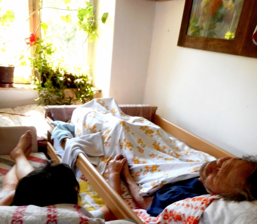 Kako se me dotaknejo besede. Ravno tedaj, ob pol treh zjutraj (pred enim tednom), mi je postalo še kako jasno, da se začenja čisto zadnji del očetovega življenja ... Ata je dihal ... kot lokomotiva v klanec ... težko težko je dihal ... v prsih mu je hreščalo ... Kot bi nekdo praskal po napihnjenem balončku ...