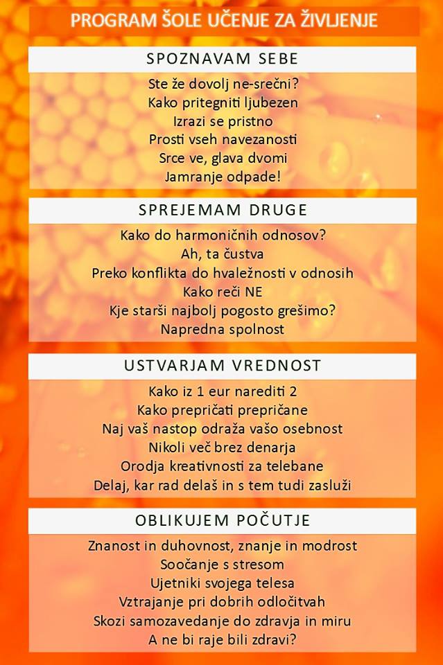 Program izobraževanja šole za življenje je vsebina dogovora in sodelovanja otrok, staršev, učiteljev in mentorjev, da skupaj so-ustvarimo znanje in sposobnosti za prihodnost, ki ga potrebujemo za skupni razvojni proces skupnosti v kateri delamo in živimo!