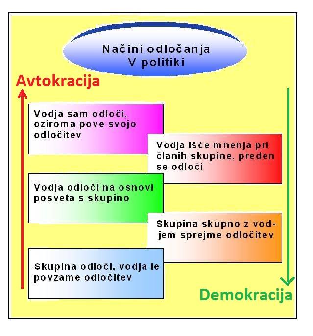 Kaj je bistvena razlika med avtokracijo in demokracijo, kot je razvizdno iz prikaza zgoraj?