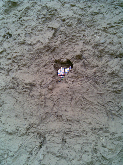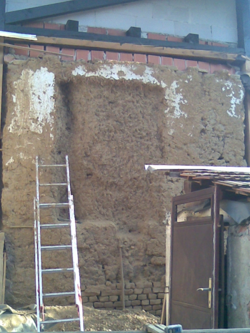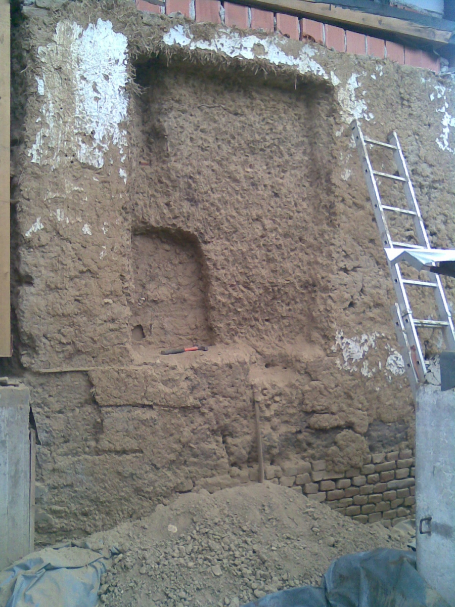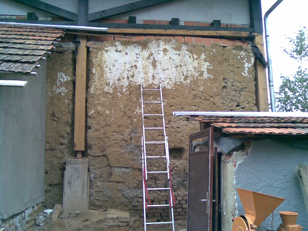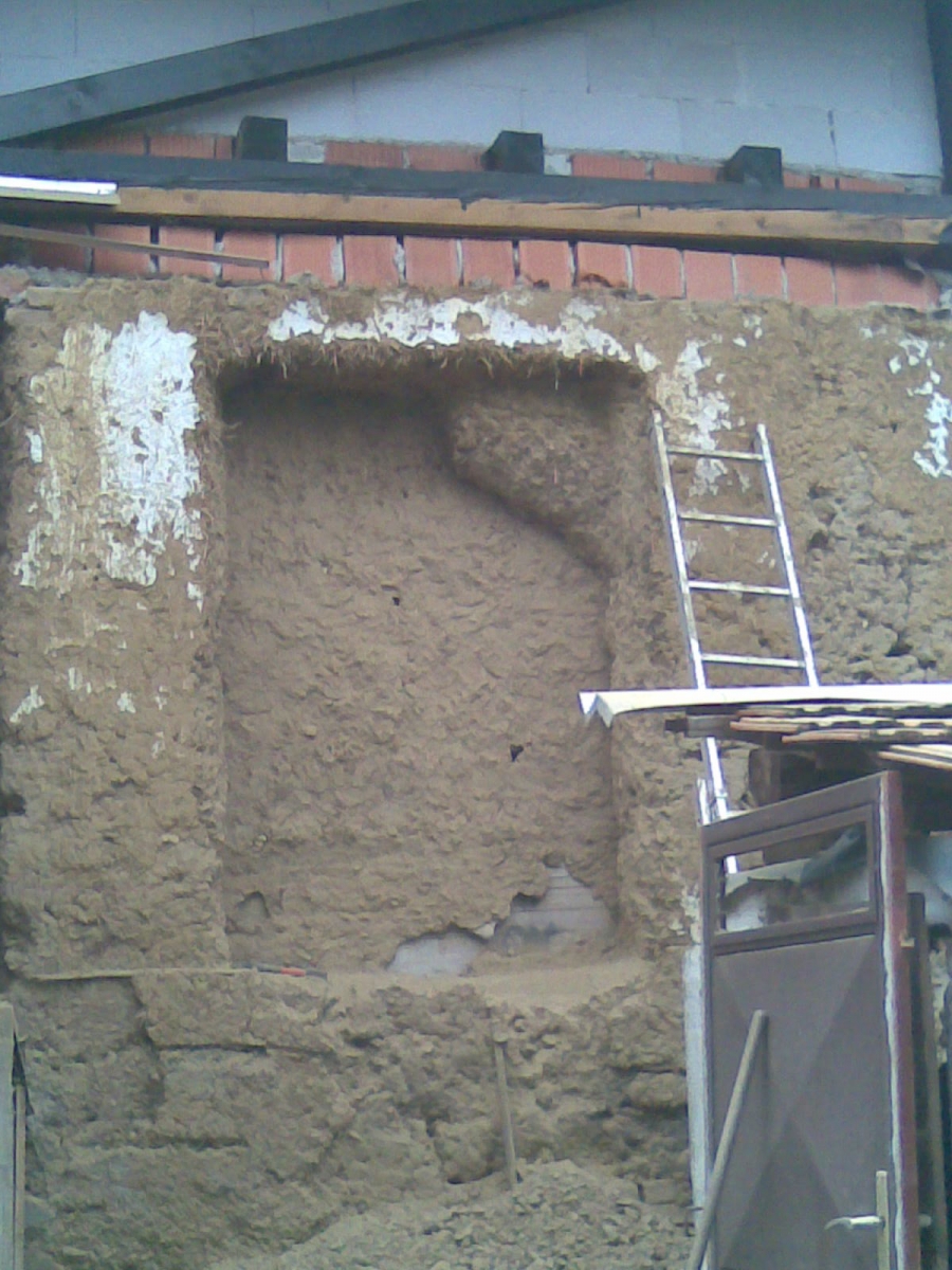 Zazidavanje je potekalo po klasičnem postopku. Glino, ki sem jo prej skopala, sem z vodo zmešala in jo ponovno nametala na zid. Zgoraj sem naložila težko leseno desko, nanjo z glino zazidala polno opeko in na notranji strani z njo naredila omet. Če glini dodam malo vode, pri sušenju malo razpoka. To je dobro vedeti, sicer se lahko ob sušenju naredijo dokaj velike in globoke razpoke.