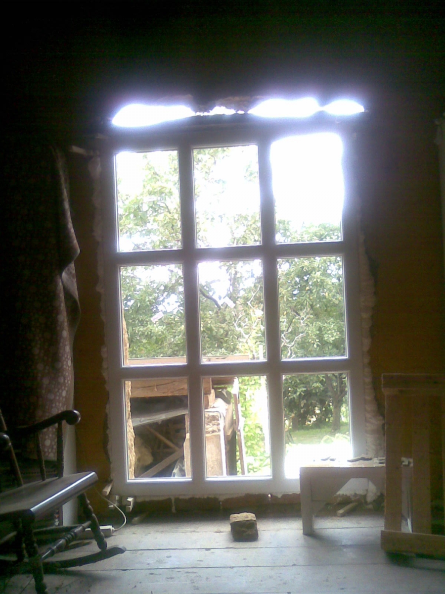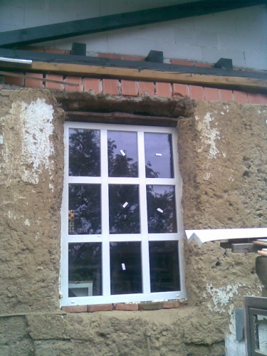 V eni od sob je malo dnevne svetlobe, zato sem se odločila, da vzidam dodatno okno oz. fiksni element. Najprej je bilo treba podreti hlev, da sem sploh lahko začela kopati luknjo za okno.