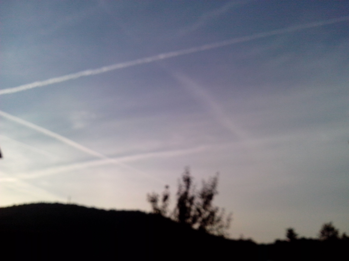 Tako se začne kemično zapraševanje. Nebo nad Postojno.