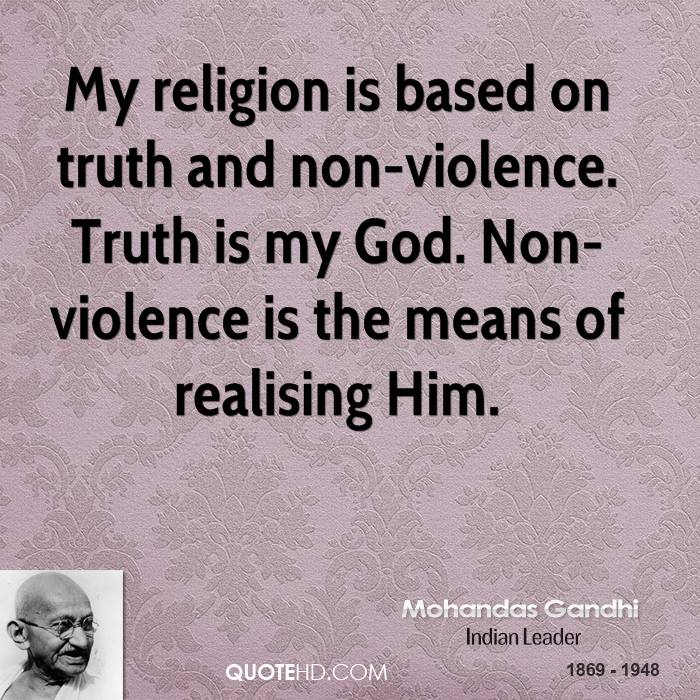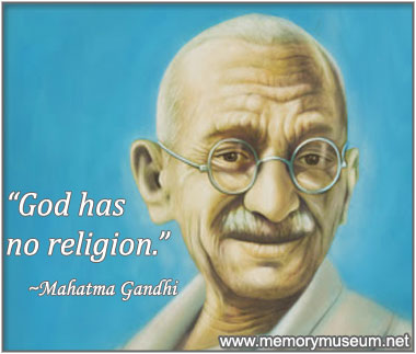 Mahatma Gandi eden od mojih mladostnih vzornikov je bil človek, ki je Indijo popeljal ven iz angleškega kolonializma. Bil je modrec, ki je izjavil kar nekaj modrih misli od katerih so me najbolj impresionirali tri; "Ti si ta sprememba v svetu, ki jo pričakuješ od drugih" "Ne obstaja Bog, ki bi bil višji od resnice" "Bog nima religij"
