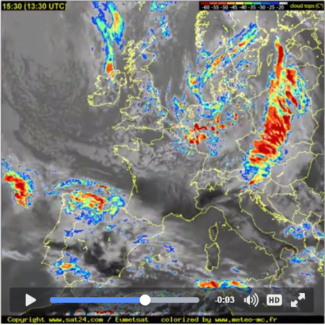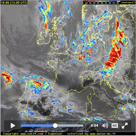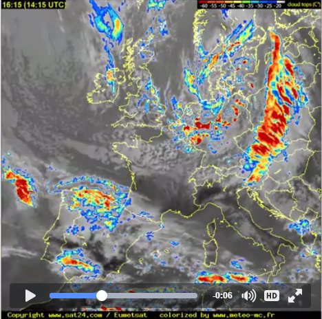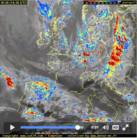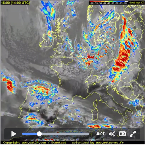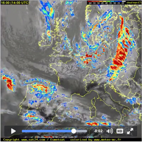 Spodaj so lepo vidne satelitske radarske slike posnete popoldne 27. aprila 2016. iz http://en.sat24.com/en/eu/km