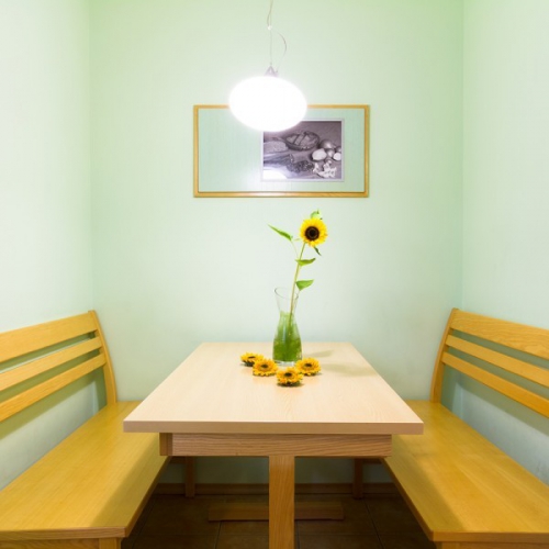 Pohištvo je iz jesenovega lesa, ki je značilno za to območje. Da bi se v apartmajih še bolj čutil duh okoliške doline, smo le-te opremili z značilnimi fotografijami iz življenja v Tuhinjski dolini.