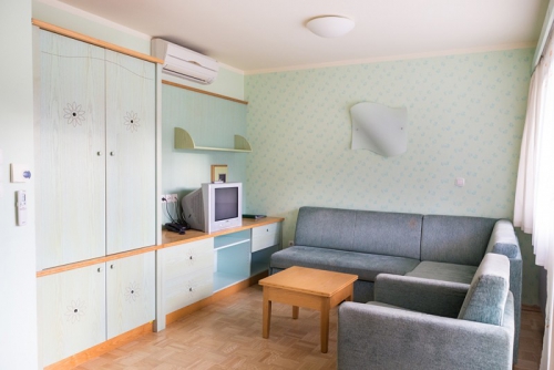 Nekateri apartmaji imajo balkon ali teraso s pogledom na celotni termalno-rekreacijski kompleks.