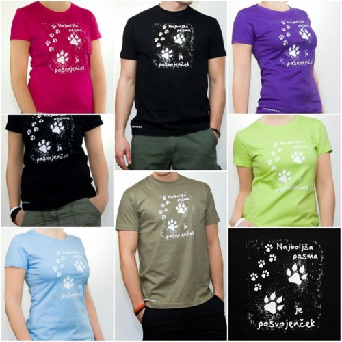 Moške in ženske majice so velikosti od S - XL, moške lahko dobite v črni in kaki barvi: ženske pa v črni, vijoličasti, ciklamni, nebeško modri in zeleni barvi.