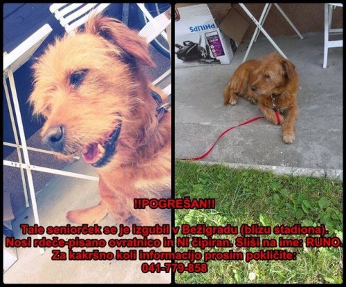 Cca 1 teden je že pogrešan tale seniorček Runo, izgubil se je v Bežigradu, zdaj je lahko kjerkoli. Prosimo, bodite pozorni nanj.