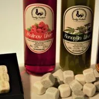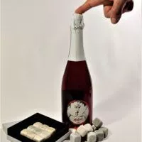 Elegantni komplet kamnitih kock za led in steklenico Malinovo Peneče vino za najzahtevnejše kupce.