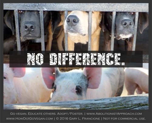 Se pravi, naše najboljše – pravzaprav edino – opravičilo, ki ga imamo za zadajanje vsega tega trpljenja in smrti je užitek: uživamo v okusu živalske hrane. Življenja živali, ki jih jemo in od katerih pridobivamo mleko in jajca, so celo v najboljših pogojih reje polna trpljenja in gorja ter vse te živali so ubite na nasilen in boleč način. Morda obstaja psihološka razlika med tistimi, ki lastnoročno zadajajo živalim trpljenje in smrt in tistimi, ki plačajo drugim, da to storijo namesto njih. Toda med njimi ni nikakršne moralne razlike.