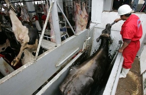 Krave so vedno znova nasilno oplojene, za kar se uporablja napravo, imenovano "rape rack" [stojalo za posilstvo; op.p.].