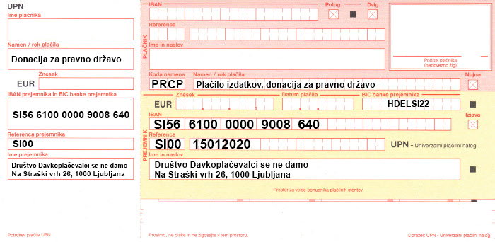 Spoštovani, pri mojem delu mi pro bono pomaga nekaj pravnih strokovnjakov, toda to ne more trajati dolgo in ne zadostuje za sodne postopke, tudi mednarodne, ki niso poceni, zato vas naprošam za donacijo. Prispevajte prosim svoj dar in po svojih zmožnostih donirajte društvu “Davkoplačevalci se ne damo” – skrajšano DPSND.